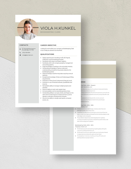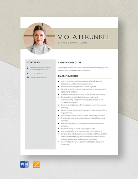 Bookkeeping Clerk Resume Template Word Doc Apple Mac Pages