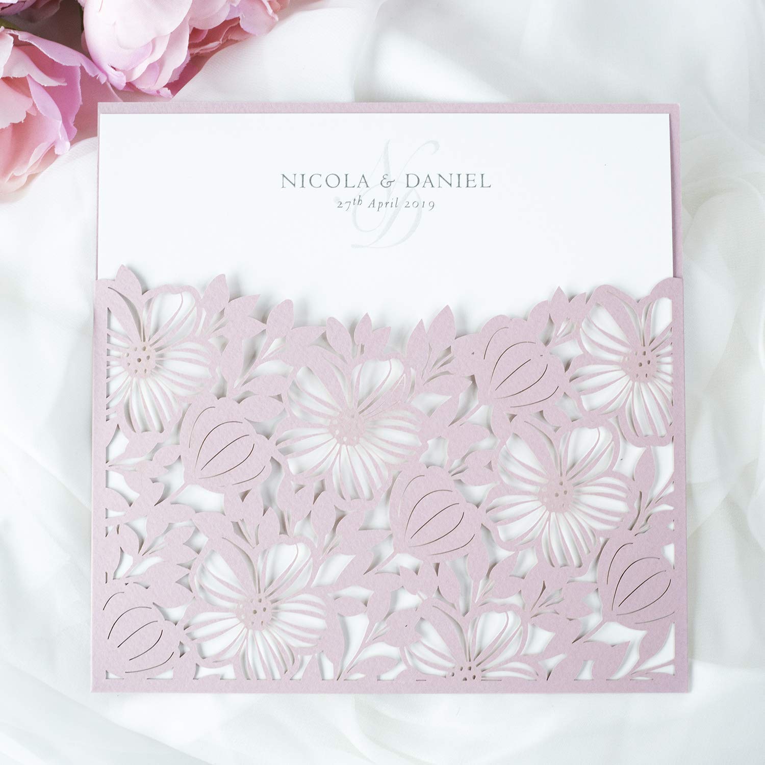 50 Cards Elegant Floral Square Lace Misty Rose Wedding Invitations