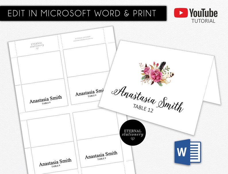 Diy Editable Microsoft Word Place Card Template Wedding Place Etsy